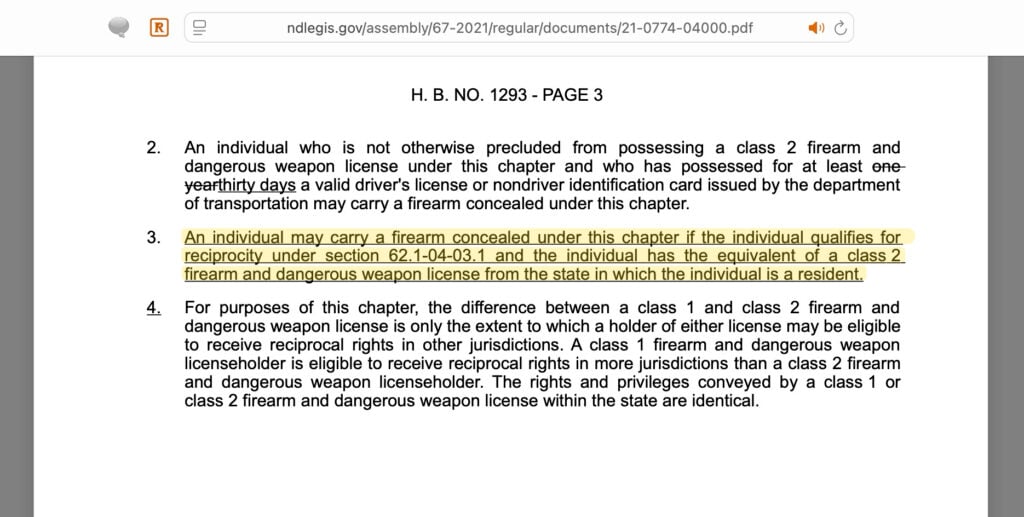 On the North Dakota Attorney General’s official website, the reciprocity section clearly states: