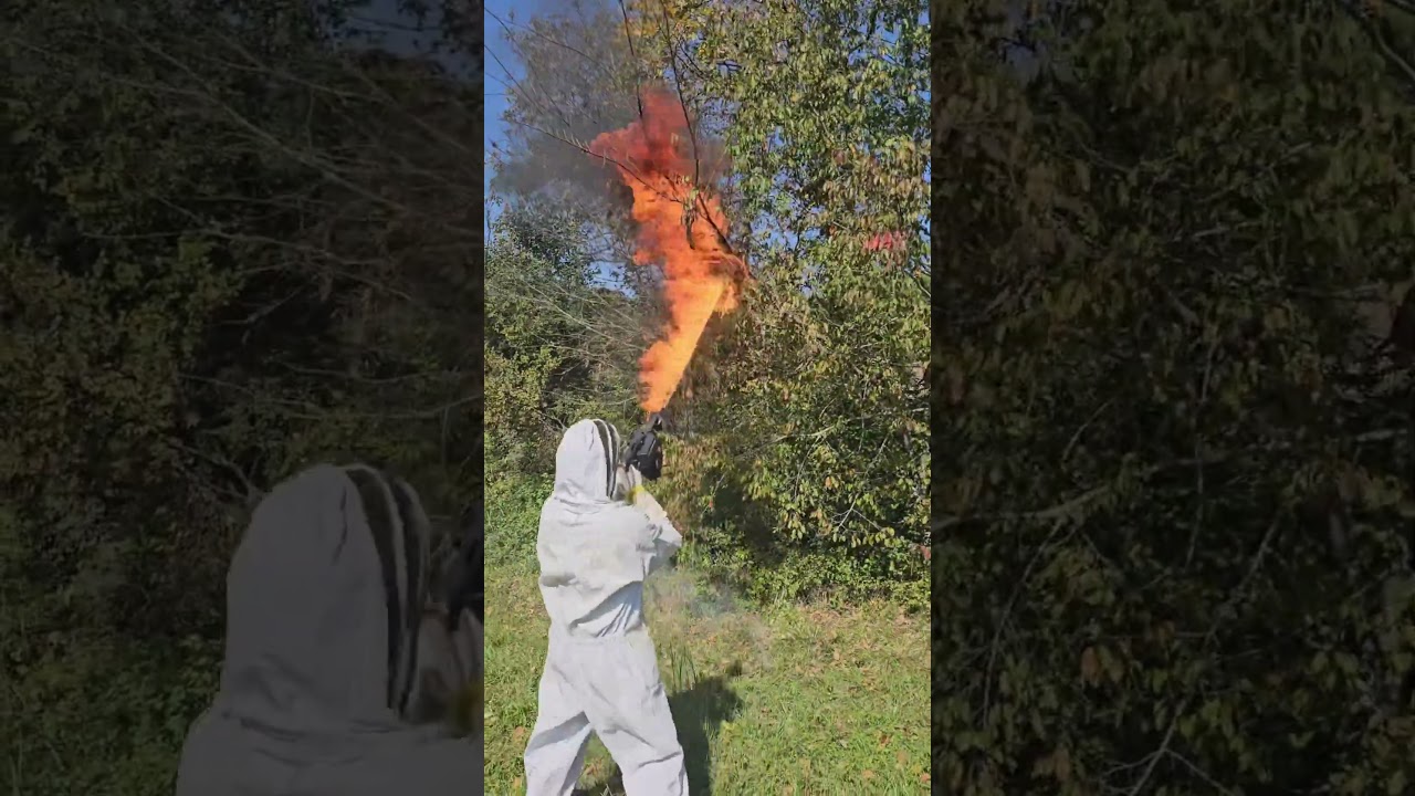 Flamethrower vs. hornets nest #shorts #bugs #funny