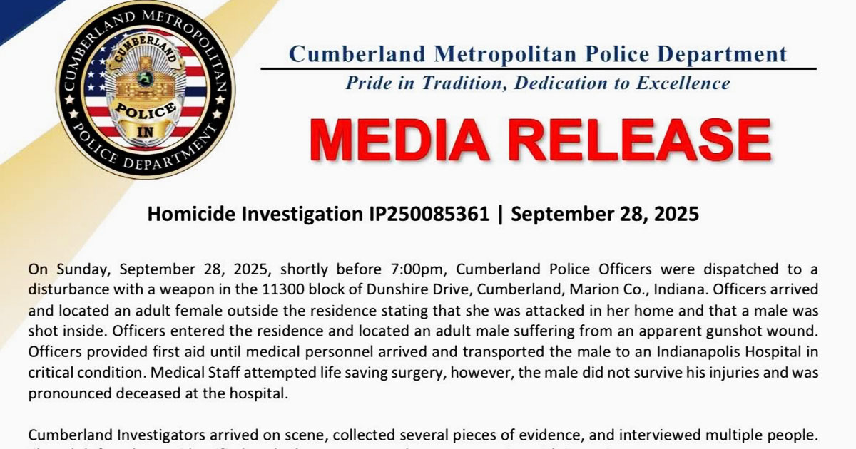 CUMBERLAND, IN — A Sunday evening disturbance in a Cumberland neighborhood ended in tragedy after a woman defended herself from a violent sexual assault inside her home.
