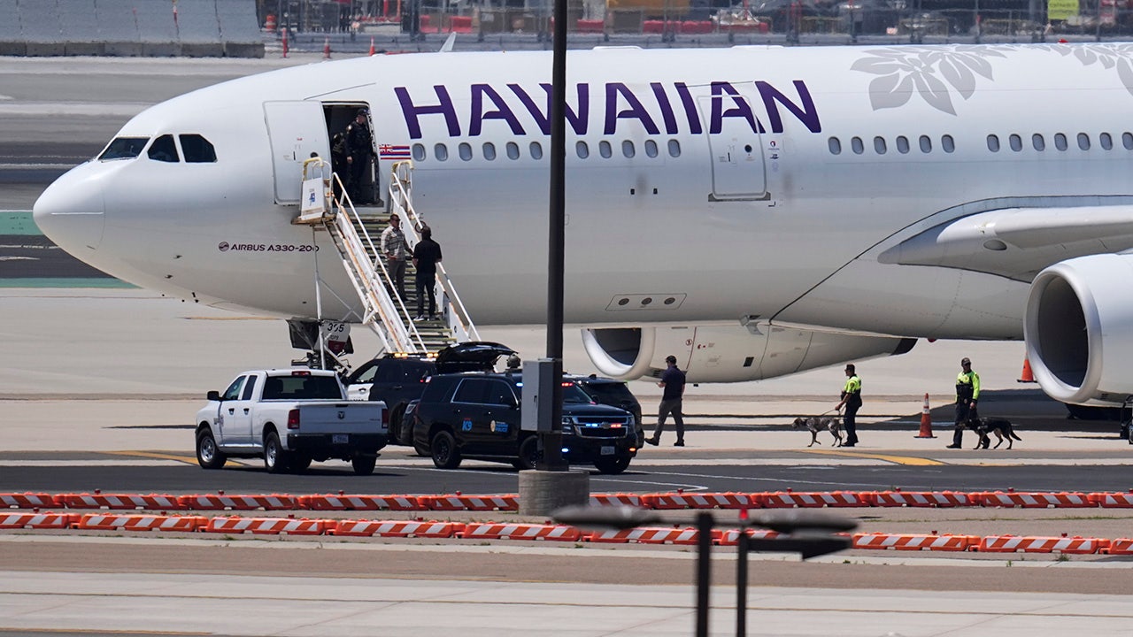 HAWAIIAN AIRLINES FLIGHT DIVERTED ON SAN DIEGO TARMAC OVER POSSIBLE BOMB THREAT; PERSON ARRESTED