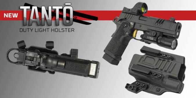Designed for use with duty lights like the Surefire X300 or SteamLight TLR1, the Tantō is built to be used with almost any pistol on the market and launches with a huge number of models already tested to fit. This includes 2011-style pistols, 1911, Glock, CZ P10, Springfield Echelon, Walther PDP, Shadow Systems, Ruger RXM, HK PV9, and a lot more.