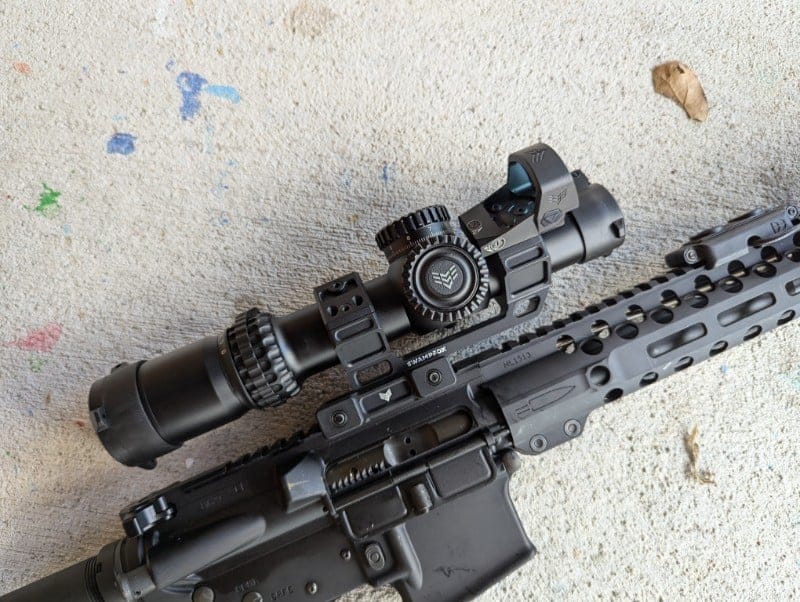 I’m not a big LPVO user. I think they’re fine, but their price, weight, length, and durability concerns have always been downsides I take seriously. I prefer a prism scope or magnifier with a red dot, especially since, in my area, I don’t have any range that goes beyond 200 yards. Still, I felt a need for an LPVO just to learn a bit, experiment, and make a more informed decision if I decided to pursue the LPVO option seriously. I wanted something budget-friendly, but I didn’t want a piece of junk. I eventually settled on a Swampfox Warhorse with a Swampfox mount.