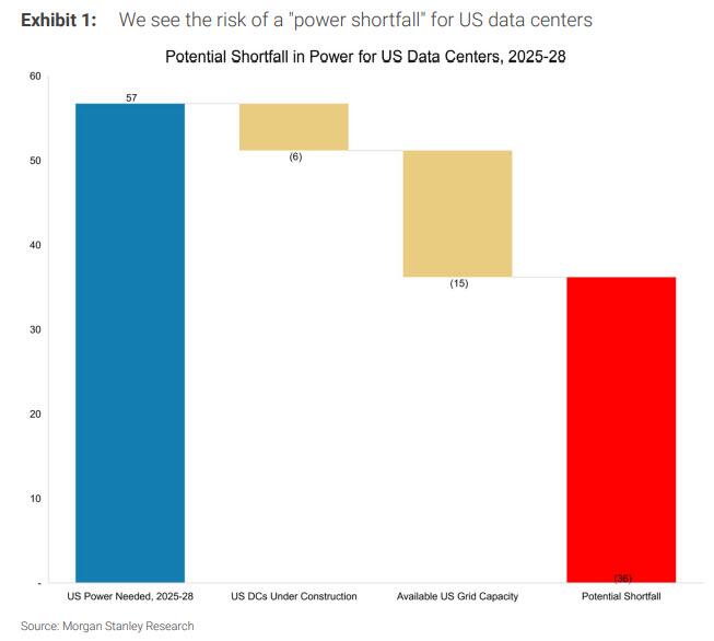 Recall, last December, Morgan Stanley calculated that the US would need at least 36GW in new power to be brought online by 2028 to energize all the (yet to be built) data centers, a number which one year later is surely far higher.