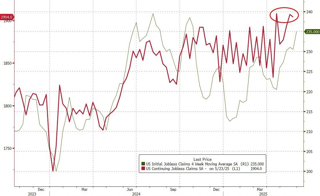 The number of Americans filing for jobless benefits for the first time jumped to 247k last week (above the 239k expected) – the highest since October 2024…